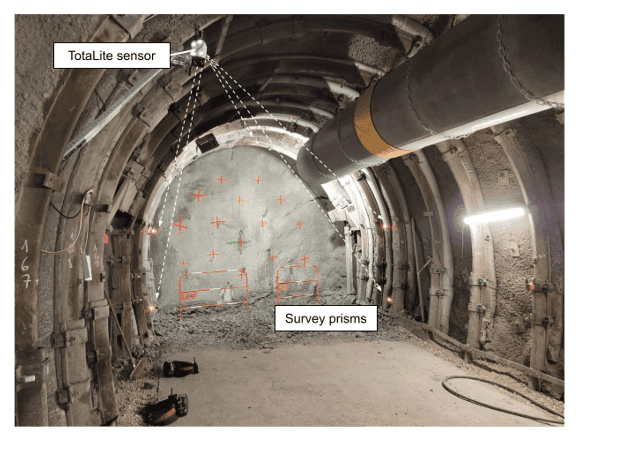 TotaLite was deployed as part of a six-month pilot programme to evaluate automated optical monitoring in newly excavated tunnel sections.