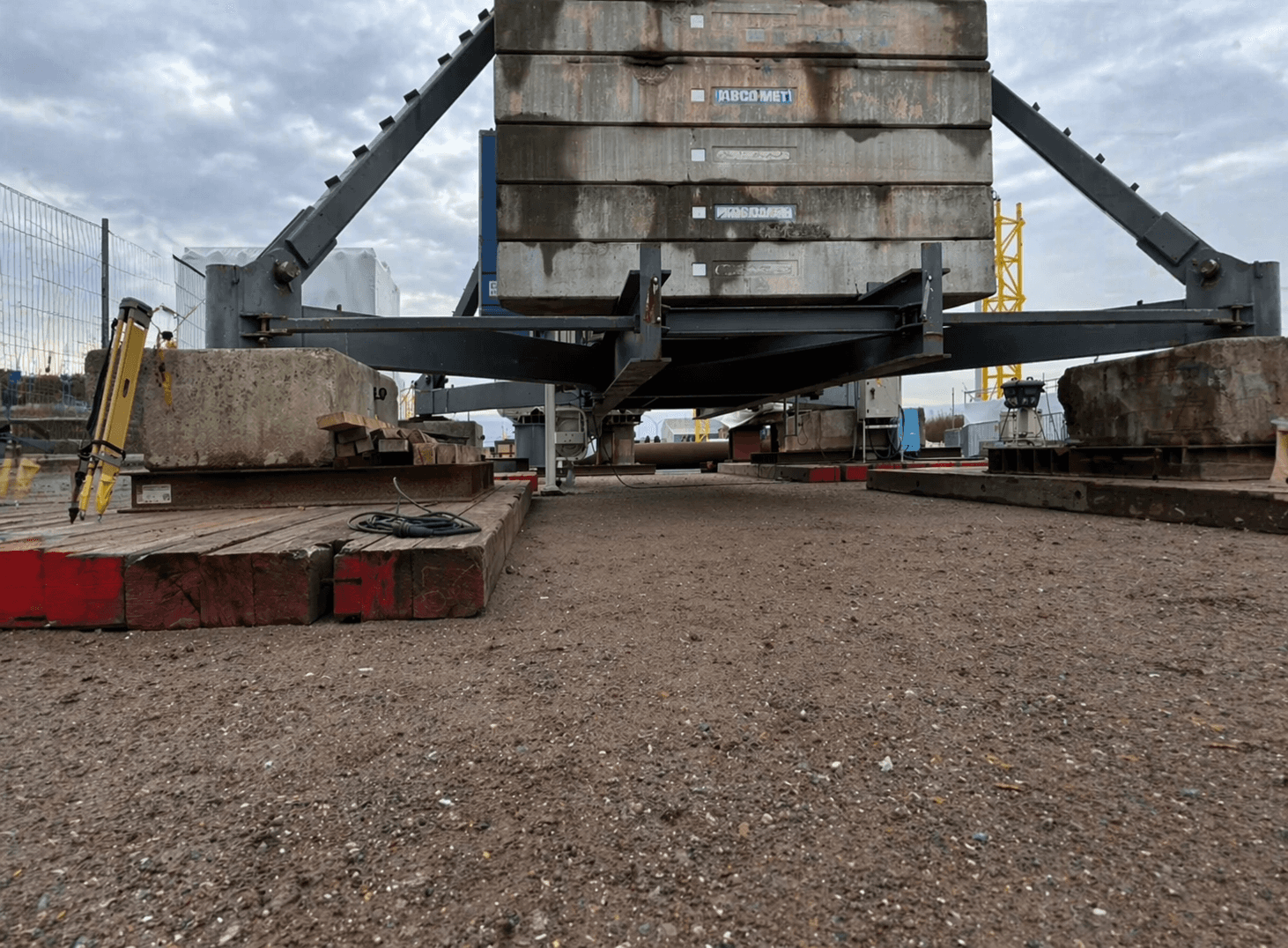 For Enigmatix, the engineering firm responsible for that ground, two jobs needed doing. The first: confirm that an existing crane operating on weaker-than-ideal soils was holding stable under daily use. The second: run a controlled load test on the subsoil itself, a heavy steel monopile laid horizontally across a foundation block, its full weight pressing down on the ground so the team could see exactly how the subsoil would respond, both at the moment of loading and in the days that followed.