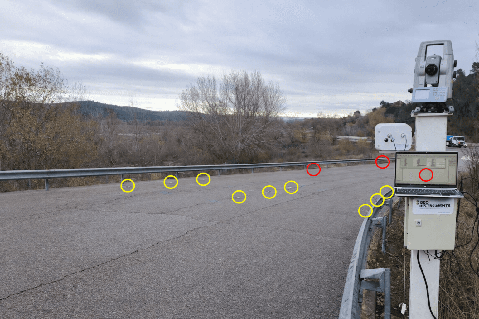 Set up up to 50 reflective prism targets for continuous data capture, every five minutes, 24/7.